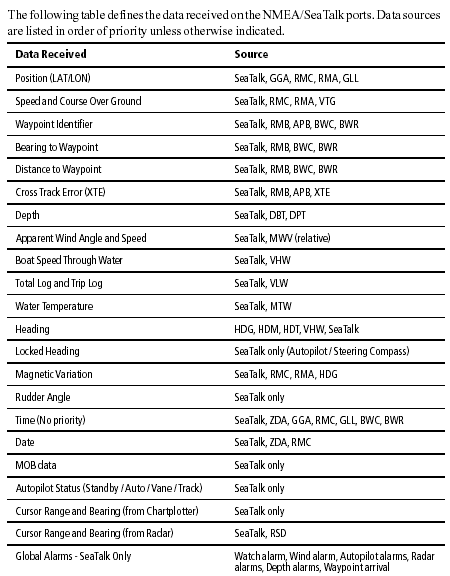 Der Raymarine RayChart GPS 320 verarbeitet NMEA 0183 und SeaTalk Daten am Eingang und Ausgang.